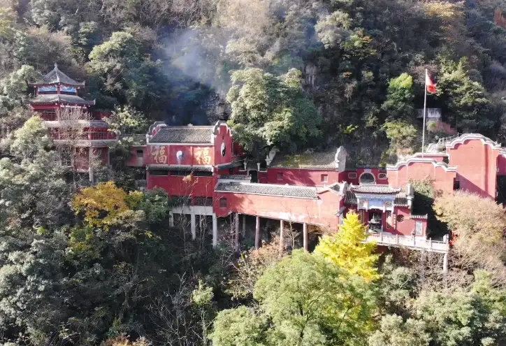 祖师殿由唐中宗李显建于公元688年,毁于清顺治二年,复修于1995年,从观音洞折回再上山顶就