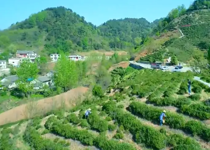 新乡茶园,站在茶山上眺望,一垄垄茶树铺满山头,绵延成片。拂面不寒的春风里,修剪成形的树冠