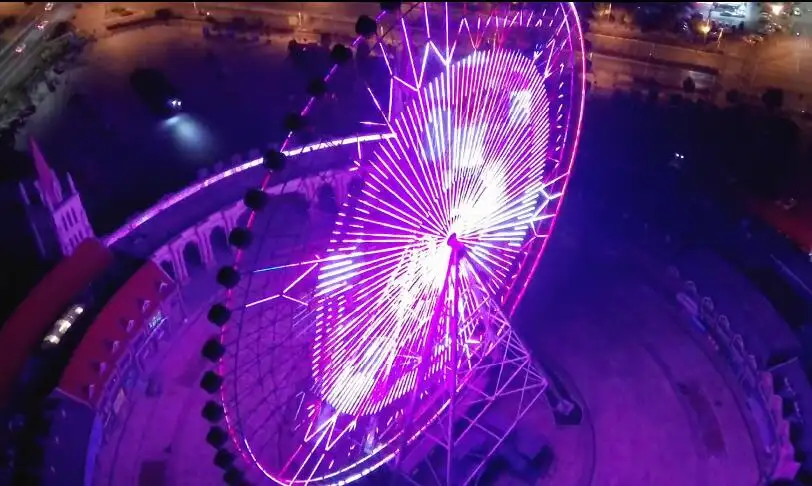 珲春之眼摩天轮位于延边朝鲜族自治州珲春市,占地面积3000-5000平方米,安装58个游览吊箱,