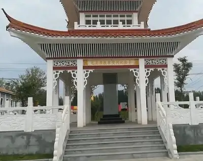 浩气烽火台纪念亭位于稞子山顶,居于陵园中轴线上。是一座钢筋混泥土结构的仿木六角亭,彩