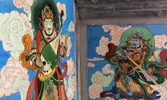 正院东西各三间配殿,西厢正供南海观音,东厢正供如意轮观音。院落不大,建筑雕梁画栋,精雅紧凑。正殿门前左右石碑各一,左为明代成化年公德碑,右为清嘉庆年功德碑。右碑前一古井即韦驮神背井。井口漫砌古板,磨砺光滑,井边木质辘轳,俱为古物。