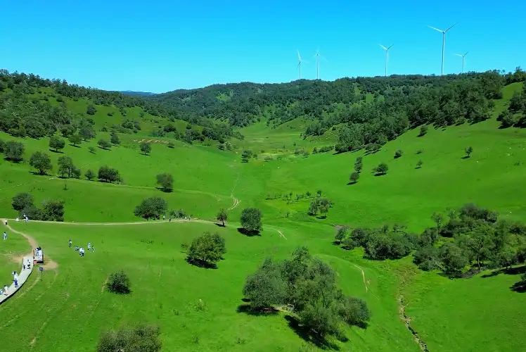 景区草甸丰茂,坡缓谷阔,山顶浑圆,山脊起伏,绿茵似毯,绵延广布.常年流水的渠道多达十余条,曲折蜿蜒于宽谷之中,没有任何人为污染。水质清澈,流量稳定,空气清新,气候宜人,形成了独具特色的自然旅游资源景观。