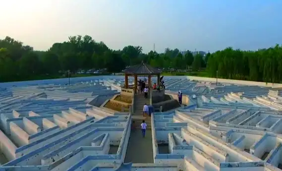 鼓乡迷宫坐落于商河县商中河西岸滨河湿地公园,明辉路和滨河路交叉口,西关桥西南角处。于