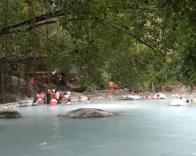 火山热海仙人澡堂位于云南省保山市腾冲市火山热海景区内,又称为美女池温泉,坐落于群山环抱的热海景区腹地,由山坡之上鼓鸣泉、珍珠泉、怀胎井、姊妹泉等景区内热沸泉自然涌出,流下山坡自然降温后汇集而成。
