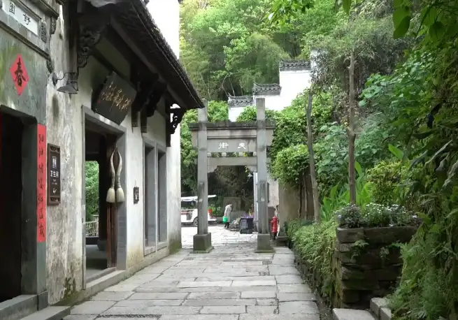 篁岭村空间布局别致:一条长388米的天街横贯南北、三座桥岗通往村内外、六口井塘寓意六
