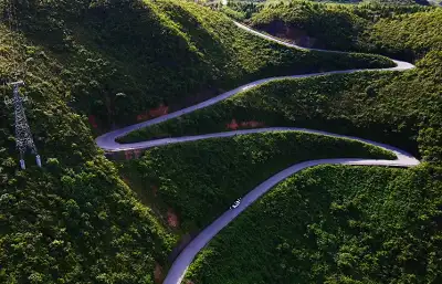 45道拐是平川公路的一段,连接洪安古镇和川河盖景区。此段公路全长10 公里,海拔从625 米