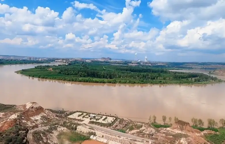 黄河入陕第一湾位于府谷县墙头尧峁村,黄河在这里拐了一个90度的大弯,河曲水急,犹如金龙摆