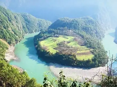 南江第一湾位于南江口镇深湾村和河塱村与古蓬村的交汇处,远观似长“u"型,湾长