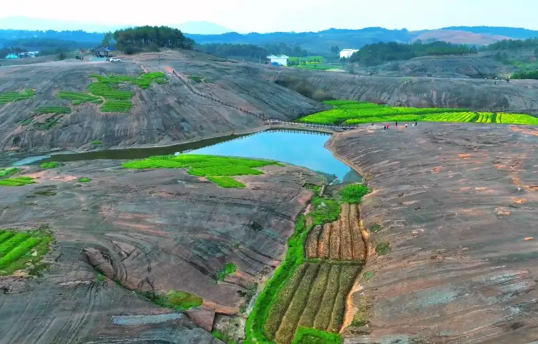 渡口丹霞山位于安仁县西北隅,距县城约15公里。这里的丹霞地貌群面积庞大且全然天成,远观