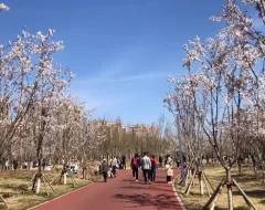 潮白河樱花公园位于观潮路南侧潮白河畔,占地约300亩,栽植樱花及其他景观树木约12000株。