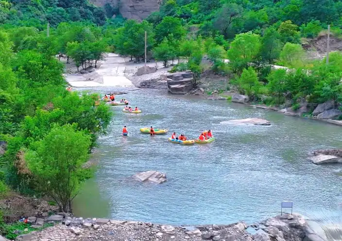 青龙峡大河漂流全程漂流约2-3小时,九曲十八湾,六瀑七连潭,誉为“华北第一漂”。大河漂流
