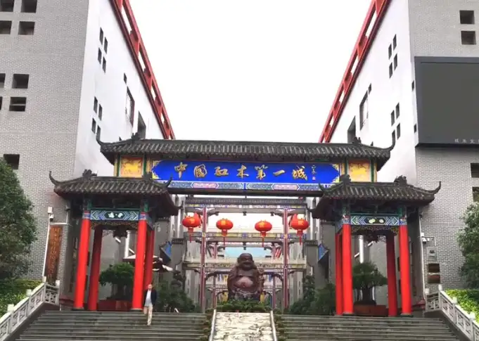 红木文博城,位于广西凭祥市境内,总占地面积497亩,是一座集展、研、游、销、会等为一体、极具文化品位与特色的商贸文化旅游综合体。建成建筑总面积27.3万㎡,建成广场、停车场2万㎡。其中,其中,建成红木文化精品展馆4栋8.8万㎡,红木文化艺术园44栋17.5万㎡,红木文化博览中心1万㎡。同时,相继建成了红木标本园、沉香阁、友谊楼、友谊桥、红木文化广场、红木