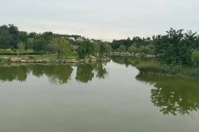 减河湿地公园以河为中心,在河两岸种植芦苇、蒲草,形成的滨水绿带。西岸是以湿地为主,景