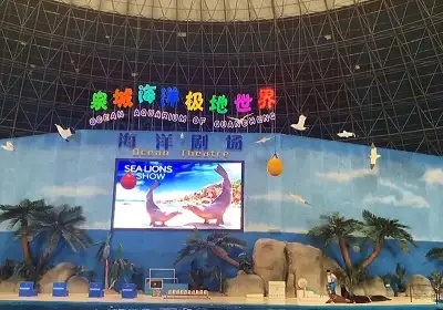 泉城海洋极地世界展示面积8.8万平方米,投资12.6亿元。分为热带雨林、海底隧道、海洋