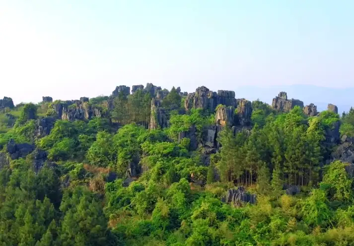 灌阳文市石林是由典型的喀斯特溶岩浸蚀而成,占地面积约5平方公里,奇石罗列,形态各异,具有双层结构,剑状峰顶,造型奇特等特点。“飞马横空”、“八仙飘海”等景点栩栩如生,她是可与云南路南石林相媲美而更为典型的剑状岩溶地貌。石林下樟榕苍遒,红枫绿柳交相辉映,古井清泉,小桥流水,鸟语花香。据考证文市石林后发现其有两大显著特点:一是它是一种比云南路南石
