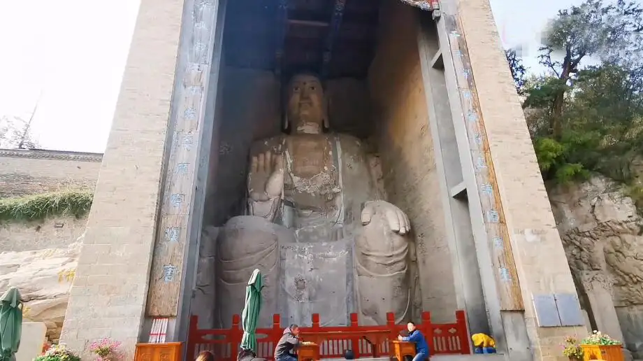 龙山大佛位于山西省太原市晋源区花塔村龙山景区内,是龙山童子寺的佛像。原来为3尊佛像,