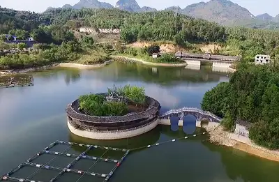 东仁湖岛休闲山庄距河池市中心约15公里,交通便利。山庄面积1000余亩,湖面400亩,是目前广西最大的综合性游山庄之一,现已建成并投入使用了大门景区、休闲半岛区、欢乐岛区、餐饮区、烧烤野炊区、CS野战区等,融参与性、观赏性、娱乐性、趣味性及休闲为一体,是以“自然生态景观,欢乐休闲天地”主题的综合性山庄,也是广西四星级乡村旅游区。地址:河池市金城江