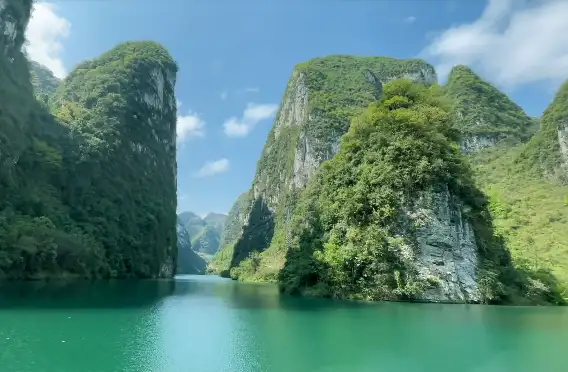 河池小三峡风位于金城江区西北部23公里处,地处河池市金城江区六甲镇,由天门峡、凉风峡、龙门峡和漓江田园风光等组成,是我国典型的石灰岩喀斯特峡谷。景区内山峰兀立、绝壁斧削、钟乳倒悬、古藤挂天、曲径通幽,江面一尘不染,水天一色,峡比长江三峡险峻,水比桂林漓江深幽,其中的“江回秀峰、长城遗恨、雄狮盼日、天泉飞瀑、金龟探月、美女出浴、玉兔下凡、