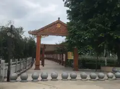 杨家埝红色文化长廊位于村址北侧,全长300米,搭建红色钢木骨架,内嵌50块党的历史发展进程