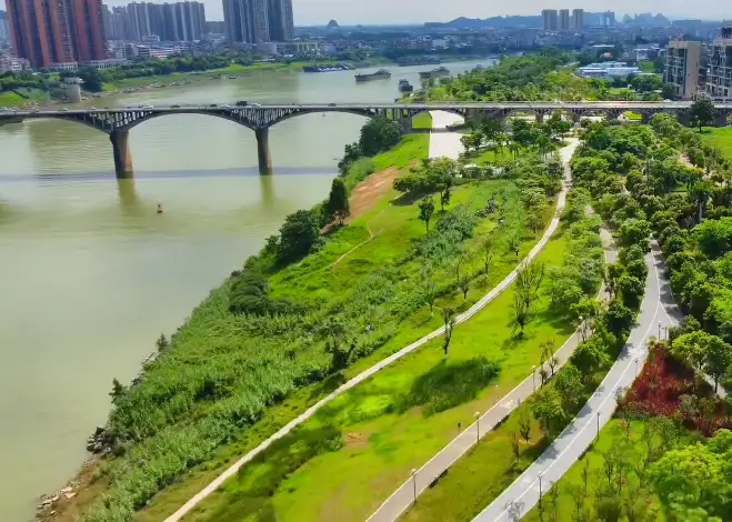 郁江滨江公园位于贵港市郁江南北两岸,南北两岸均西起西环路东至罗泊湾大桥,北岸全长7.4