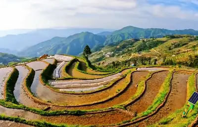 花瑶梯田位于湖南省怀化市溆浦县山背村,主景区绵延8公里、面积达6万多亩,从海拔300米的山谷一直铺展到1400米的山顶,层层叠叠1000多级,其雄伟、壮阔、秀美堪称世之绝。起源于先秦,初步形成于宋朝,距今已有两千多年的历史。它是千百年来,瑶汉祖先勤劳、勇敢和智慧的结晶。