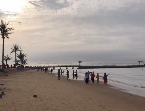 蓝月沙滩位于葫芦岛市绥中县滨海大道东戴河山海同湾海景公寓南侧约150米,是一个以爱情为主题的沙滩,在这里,您可以将身心完全沉浸在这片碧海、灯塔勾勒的海边乌托邦中:在细软的沙滩上,和孩子欢笑着堆起心中的城堡;来一场沙滩排球,在海风的吹拂下享受汗水蒸发的清凉;以新奇之心,探寻那一个个艺术的景观小品,更有丰富的海边游玩设施,为您呈现一个夏天最恣意的