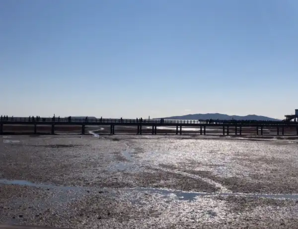 兴城红海滩位于辽宁省葫芦岛市兴城市滨海公路又一村农家院西南520米,总长约7公里,面积约600余公顷,沿海岸线只见绵延数公里铺设的木质栈道,古朴典雅,游人漫步其中。曲折蜿蜒的临海栈道直通按航母造型设计的观景平台,平台犹如一艘欲起航的舰船,深入海中,分为上下两层,高15米,除具有景观功能之外,还兼有文化科普,海洋观测等功能。红海滩是由一棵棵碱蓬草组成的,