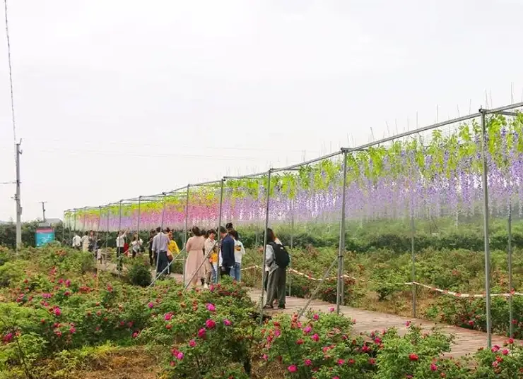 潇湘玫瑰园项目主要发展玫瑰花种植、研发和深加工。已流转土地1200亩,连栋温室大棚6800
