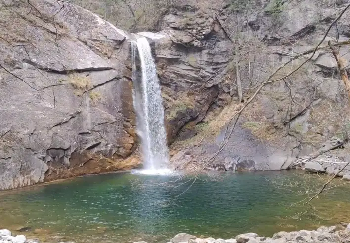 黑龙潭瀑布群位于佛坪县城西北部的自然保护区内,岳坝河上,海拔1600米的深山处。瀑布水流从山涧飞泻而下,直入龙潭。飞溅的水花如烟似雾,凉气袭人。其面积约600平方米,三面环山,竹林环抱,左右两侧山体似斧劈刀削,垂直峭立。黑龙潭瀑布右侧有一石洞,高宽各约4米,洞口方正,远处看去好像人工所凿,仔细察看乃属天然造化。山、水、洞聚为一体,更增加了自然情趣。潭四