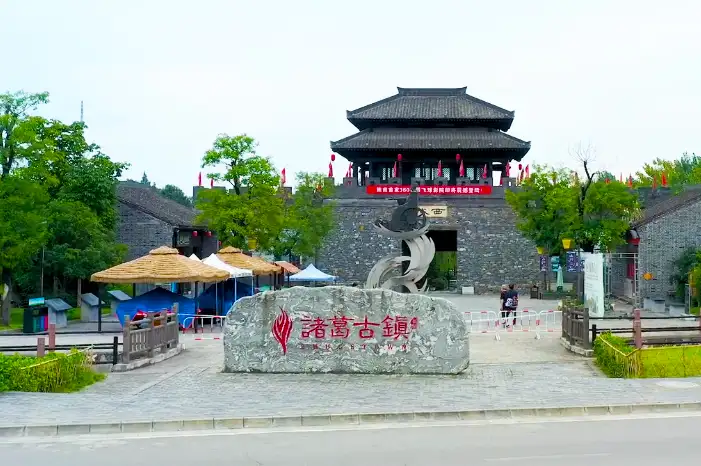 诸葛古镇以诸葛亮的 生平为线索,通过七种建筑风格、二十余组雕塑景观、三大博物 馆、一场大型实景演出,全景展现了诸葛亮忠贯云霄的一生,是 全国唯一展示三国文化主题的园区。