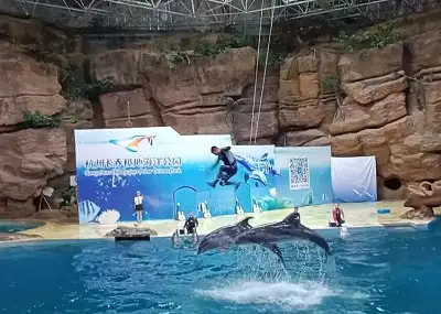 杭州极地海洋世界占地30亩,位于萧山湘湖湖畔的 汪王家山坞里,毗邻跨湖桥博物馆,离杭州市中心约20分钟车程。其属占地200亩的萧山少儿公园的