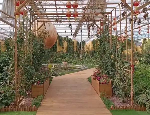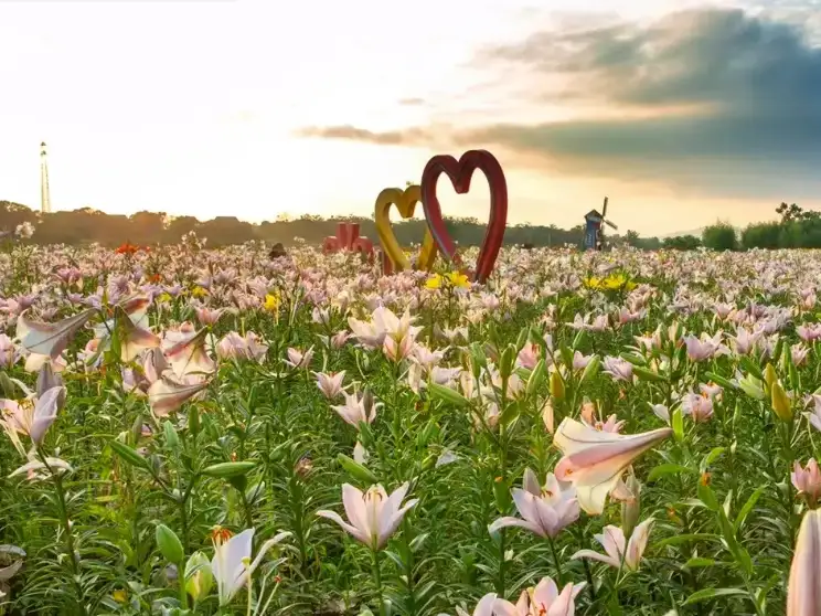 百合园,总占地一万平方米,设计理念是以“爱”为主题,每年的7月到8月举办红叶谷的百合花花