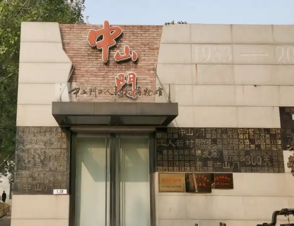 中山门工人新村博物馆位于天津市河东区中山门二号路中山门公园内,博物馆外围的墙体上用