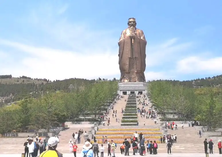 尼山,孔子诞生地,原名尼丘山,因孔子名“丘”。为避其讳,故易名“尼山 ”。据明嘉靖四年(公元1525年)戴光编修的《邹县地理志》载:“尼丘山去城东60里,在鲁源社、鲁源村。昔启圣王夫人颜氏祷于此,而生孔子者也,其山五峰连峙,中峰之麓有孔子庙”。尼山海拨340米,风景秀丽,其山形五峰耸峙,尼山傲居其中,“群山环峙插层天,五老峰高瑞气连”这是古人形容尼山的真实写照。