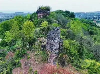 漏米岩风景区也叫狮子岩,坐落在该乡的米岩村、文明村和田湾村交界的山岭上。此岩是硬