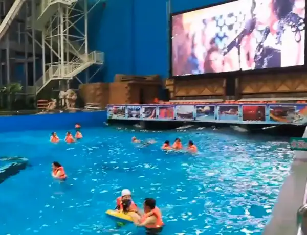 九华山水上乐园坐落于凌海九华山畔的九华山温泉水城,水城依托于花园温泉酒店,总建筑面积三万余平方米,温泉水城以“动感、奇妙、梦幻”为核心,大型造浪池、儿童戏水屋、速度直线滑梯、漩涡滑梯、浪摆滑梯、组合滑梯、火龙浴、药疗池、美容养生泡浴等,将温泉景观和水上体验有了项目巧妙融合,开创了充满魔幻和惊险的水世界。九华山水上乐园拥有水上游乐项