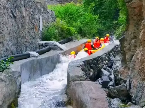 红崖峡谷漂流位于景区内爱情谷到夹板沟之间的青山乐水带,全长2.5公里,海拔落差高达百十余米。落差大,水流急,弯道多,是红崖峡谷漂流的一大亮点。漂流在峡谷中穿石绕壁、凌波逐浪,感受人与自然的和谐与亲近,领略纵情自然的无尽乐趣!乘坐橡皮艇,从清凉的水花中一跃而过,时而轻盈如燕,时而奔腾如虎,一路漂荡、一路欢叫,穿丛林、越河谷、用移动的视角欣赏沿途美景,