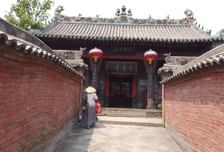 资寿寺俗称苏溪寺,位于山西省灵石县城东10公里处的苏溪村西侧。寺院坐北朝南,东临绵山,西傍汾河山环水绕,水秀山青,古树交荫,风景秀丽,为三晋古刹群中不可多得的一处胜景。据现存的碑文记载,寺院创建于唐代咸通l1年(870),重修于宋,以祈求圣佛赐福保佑庶民长寿而得名:“资寿寺”。所谓“资”者,供给、赐予也。资寿寺规模颇大,院落宏敞,布局完整,总占地面积达3000