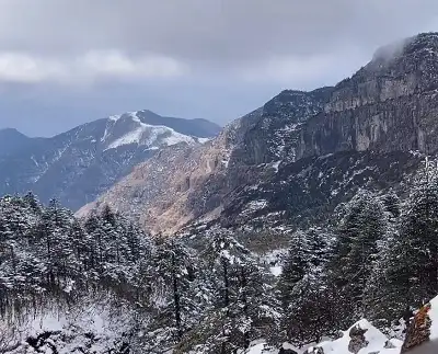 轿子雪山位于昆明市北侧,是一座冬季积雪的山峰,冬天雪景很美,满山被冰雪覆盖,银装素裹,简