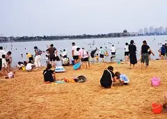 聊城沙滩浴场坐落在东昌湖畔,西靠湖滨公园,北临西关二十一孔大桥,造型也非常奇特,有别致