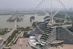 聊城地标摩天轮位于东昌湖南岸,总建筑面积约8万平方米,地下一层,地上13层,共14层,总高130