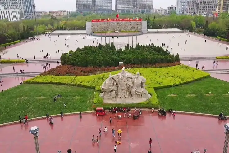 新田广场位于侯马市区中心,总占地150亩,是山西省最大的园林式广场。其轮廓构图为侯马市