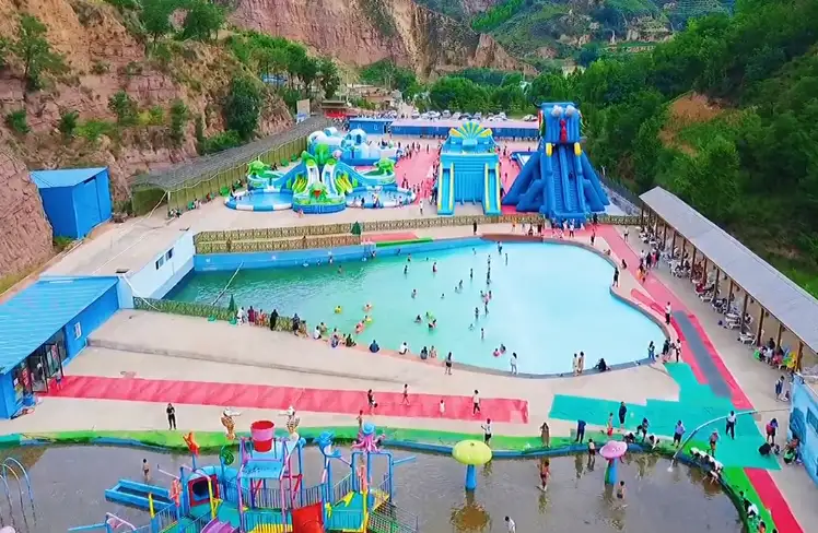 钰兴欢乐谷水上乐园位于兴县连城大道千城村,是兴县唯一一家以产业扶贫项目为主的,集水上游乐、休闲娱乐于一体的一所游乐场所。该项目有龙头滑梯、水上大冲关、荷塘蛙鸣、儿童池、造浪池、冰雪世界、网红桥、养殖垂钓、独木桥、秋千、攀岩、轮胎玩具等,超多游戏设施,安全好玩,是一个多层次的互动水上游乐场。炎热的夏季令人心情烦躁,生活节奏加快,工作压