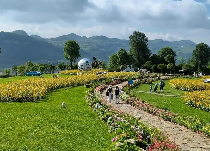 2.市区路线:六盘水火车站乘坐大河堡旅游专线—大桥小广场—旅游观光车—大河堡凉都花海景区