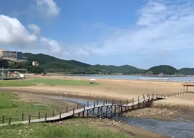 中国渔村的海水比较黄,不太适合游泳,沙滩也不是沙子做的,像是泥滩,推荐里面的一家海鲜排挡,胖大嫂,很不错,景区外有免费停车场,景区周边都有名宿,想来游玩的也可以住再附近,离石浦古城也能进一点。