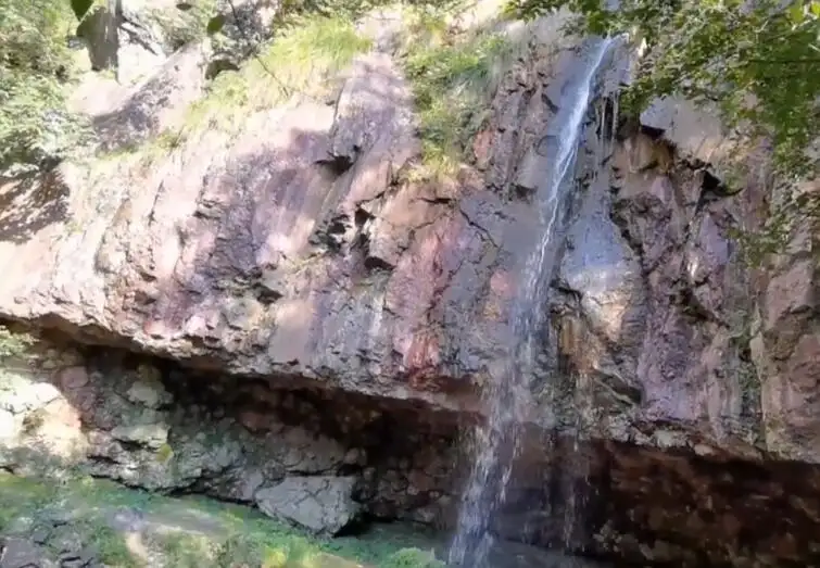 从四明山庄出发,步行约2公里的崎岖山路,沿溪涧而下,幽静的山谷里不时传来鸟儿啼鸣声。陪同的宁波市林场工作人员王先生介绍说:“鹁鸪岩就是因为传说有 鹁鸪鸟在这里啼鸣而得名的”流水的尽头是断崖,水冲下至崖谷就成了颇有气势的瀑布,但在山崖上只见其声不见其影。从山崖旁边的小路可直抵山谷,迎面是一 道峭壁,落差大约20米的瀑布在谷底半月形的洞口前,形成了四五米宽的水帘,注入洞前的圆形水潭。