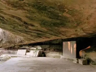 二郎山岩洞群洞口矗立一个巨大的峻岩,犹如一个阴曹的判官,令人望而生畏,我只身探幽寻胜