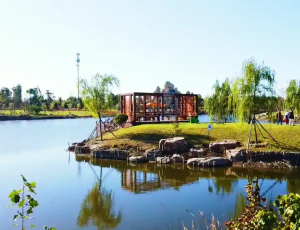 雨花谷庄园位于唐山迁西县大黑汀水库(栗乡湖)东岸,景区由春雨,夏花,秋实,冬雪四个半岛组成
