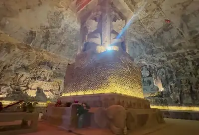 合掌岩与华阳山隔河相望,其山形似双掌合起,相传为如来佛掌佛化而成,俗称“合掌拜