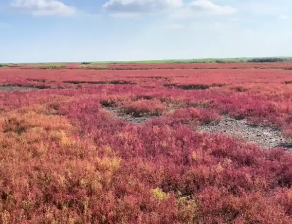 红海滩国家风景廊道位于辽宁省盘锦市大洼区赵圈河镇滨海大道,景区占地8000平方米,18公里